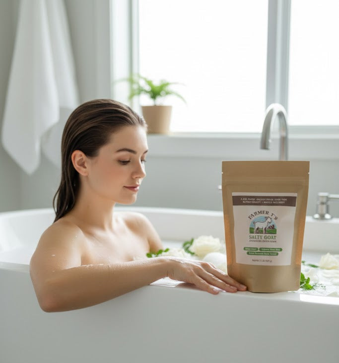 At Farmer T’s Salty Goat Soaks, every blend, every grain, and every drop of goodness is crafted for those who seek more — calm, balance, and connection to themselves. We don’t just make soaks; we create rituals that restore body and soul through the purity of nature.
